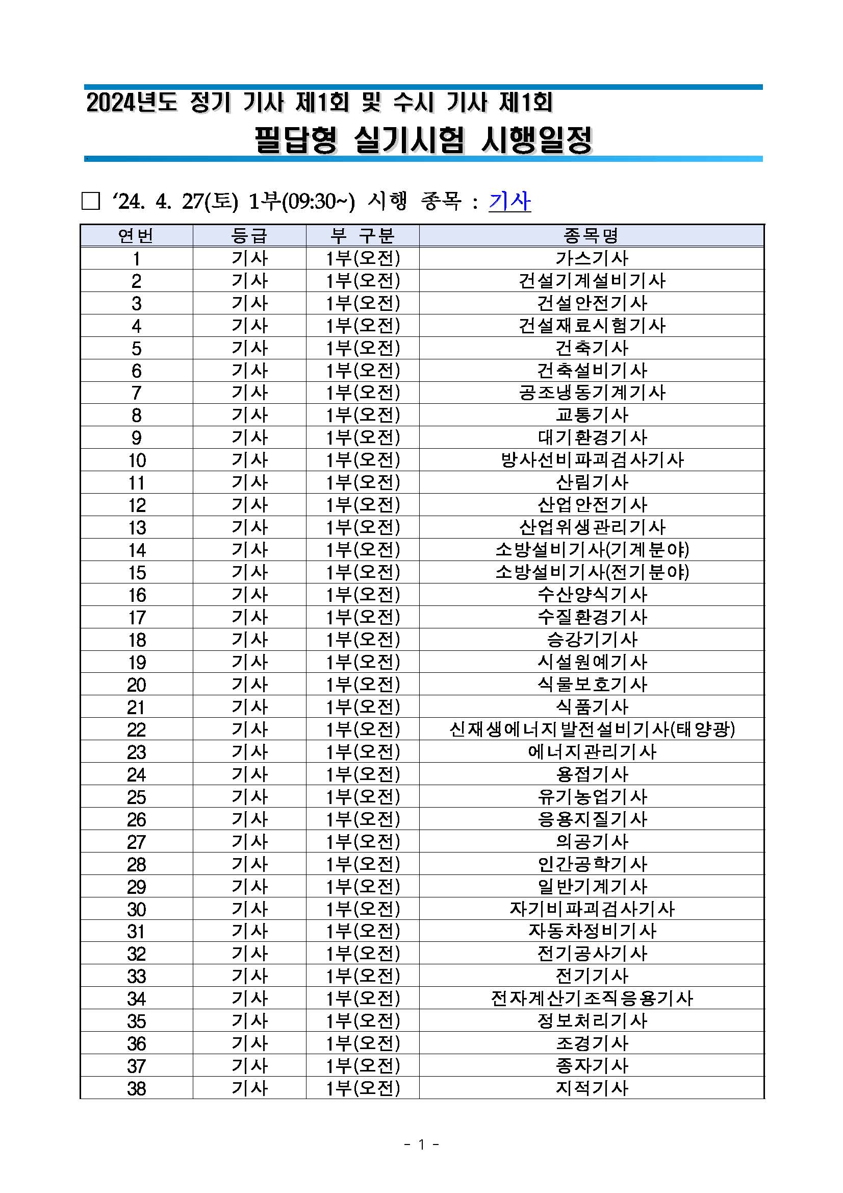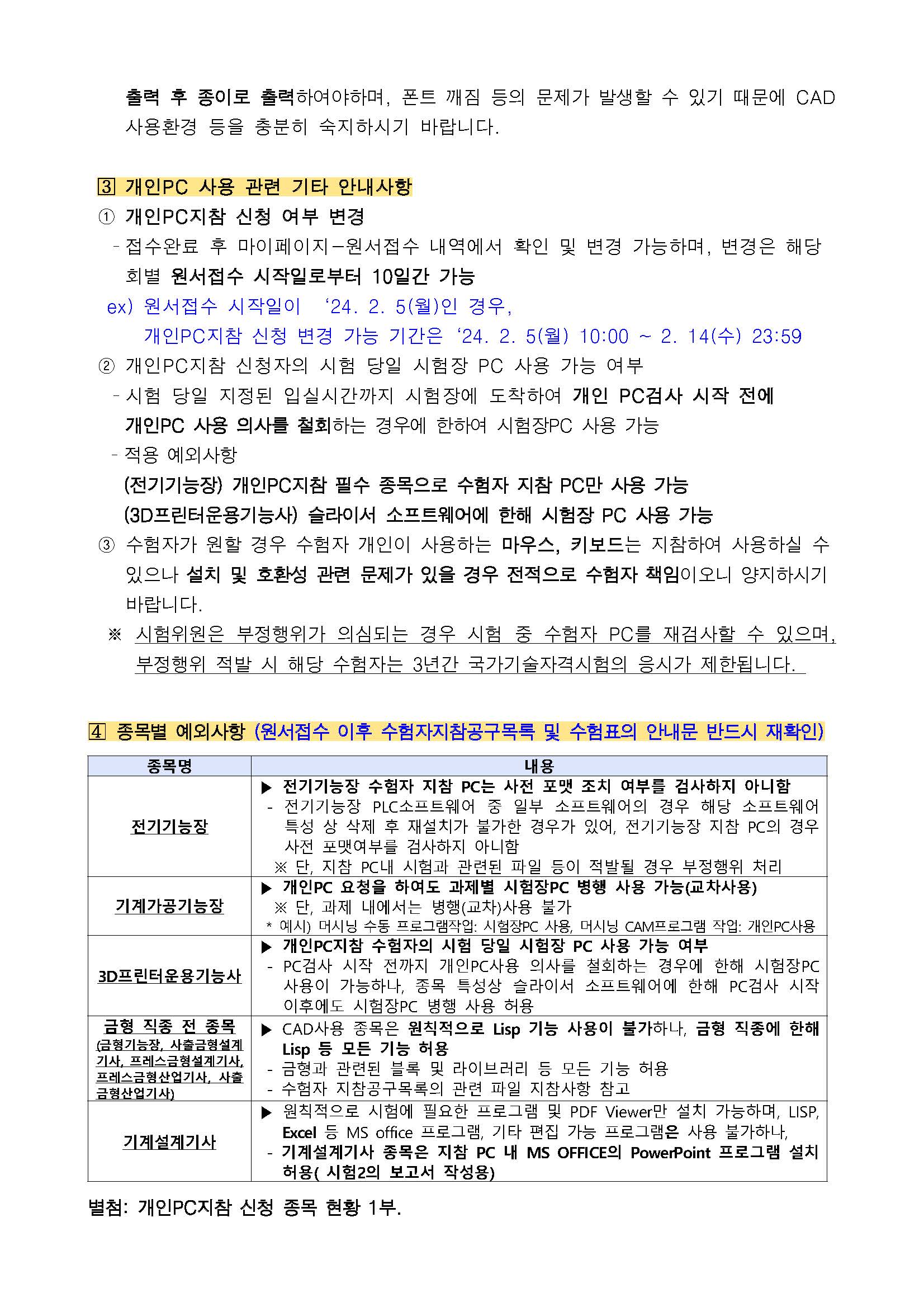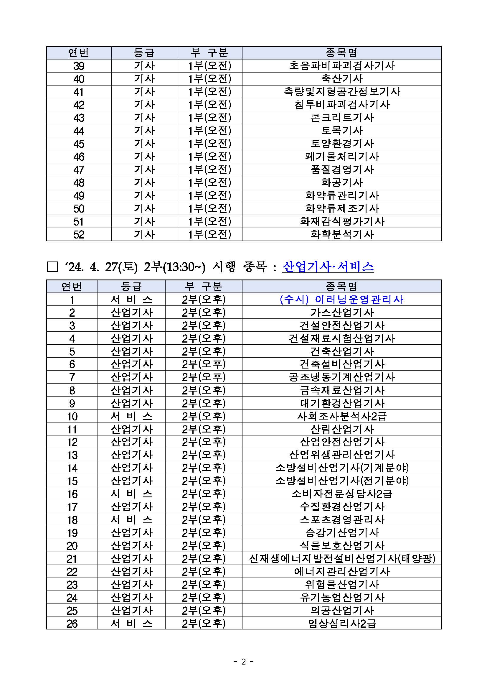 | 다음글 | [공통] 2024년도 기사 제1회 필기시험 주요 안내사항 |