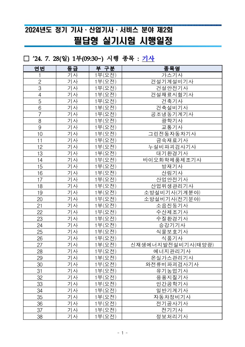 2024년도 기사 제2회 실기시험 원서접수 안내문, 필답형 시험일정 및 시험장, 작업형 시설장비 현황(예정)을 공지하오니 원서접수 시 참고하시기 바랍니다.