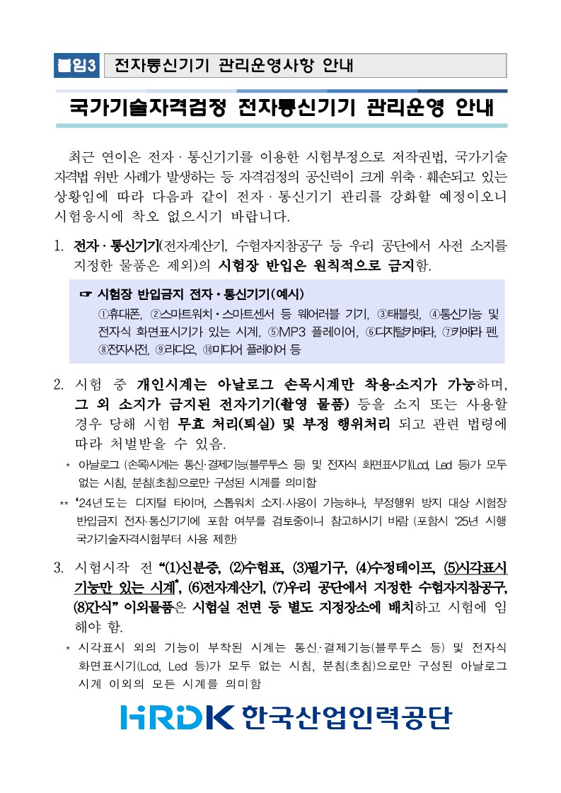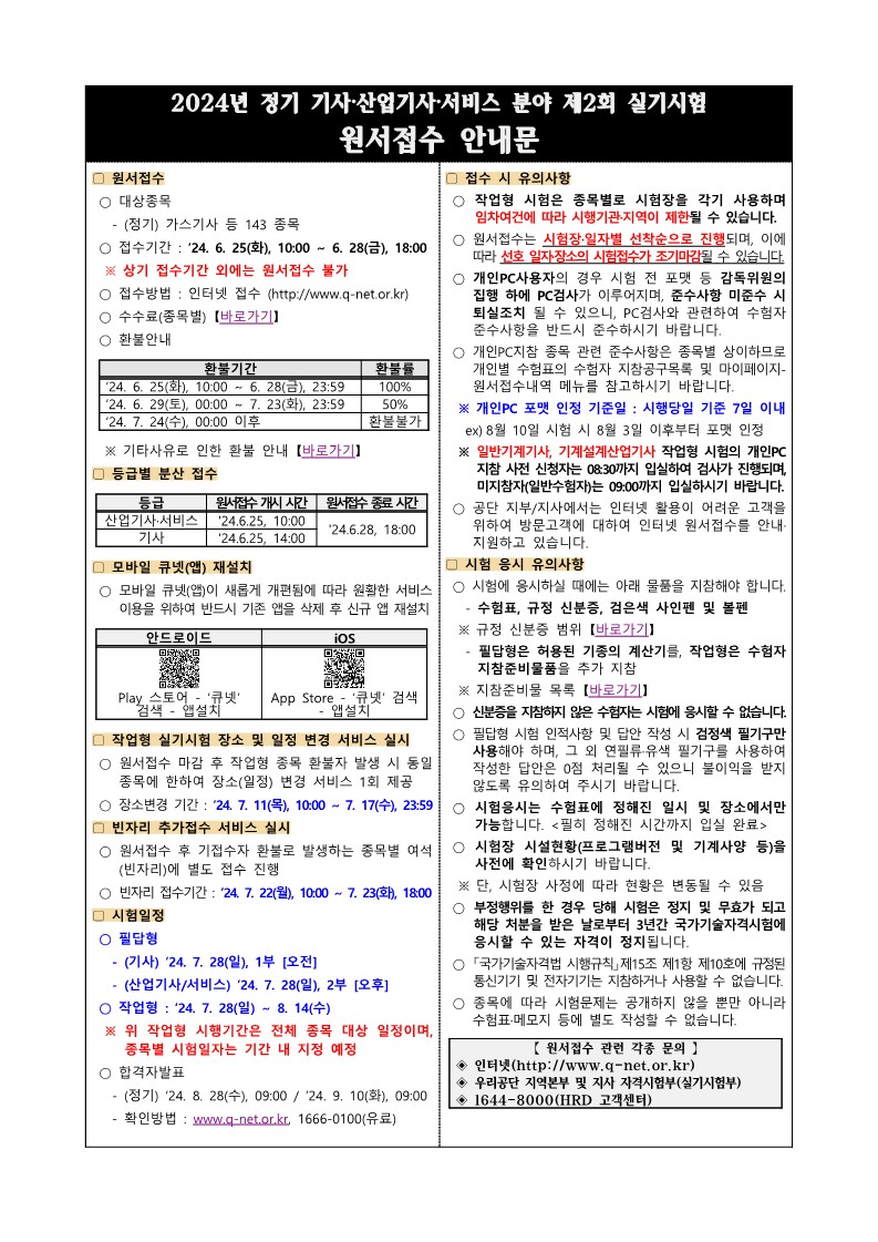 | 다음글 | [공통] 2024년도 기사 제3회 필기시험 원서접수 주요 안내사항 |