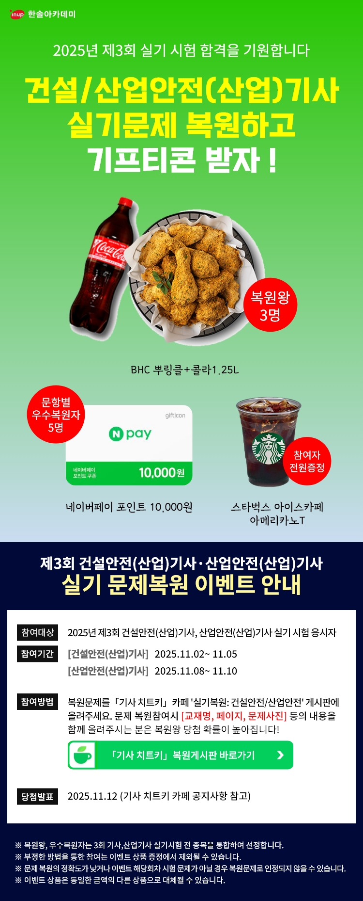 2025년 제3회 건설안전(산업)기사, 산업안전(산업)기사 실기 문제복원 이벤트