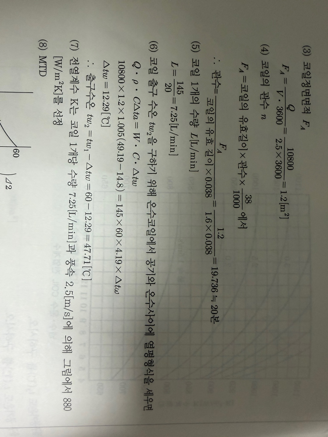 코일 출수온도를 구하는 식 t2 = t1-(q/L*C)가 상이하게 나옵니다.